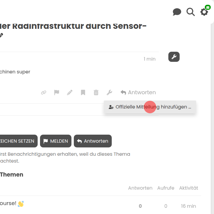 Moderatoren können "offizielle Mitteilungen" zu einem Beitrag erstellen und bearbeiten. Diese werden allen Benutzern über dem ursprünglichen Beitrag angezeigt.