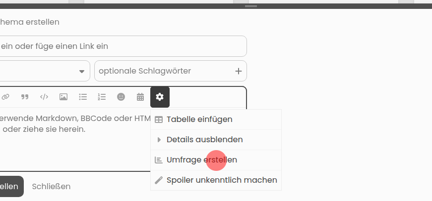 Auch ist es möglich, Umfragen direkt in einem Thema zu erstellen.