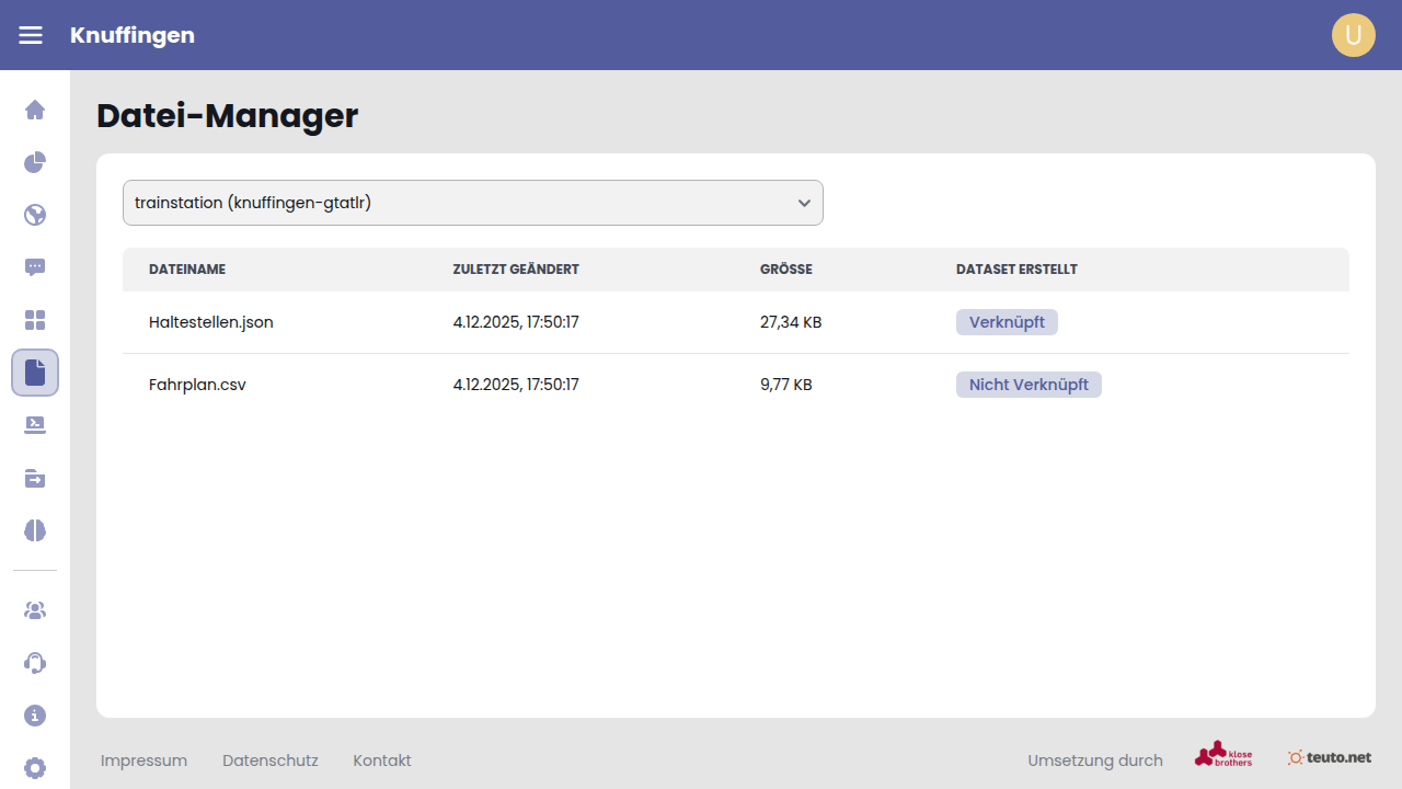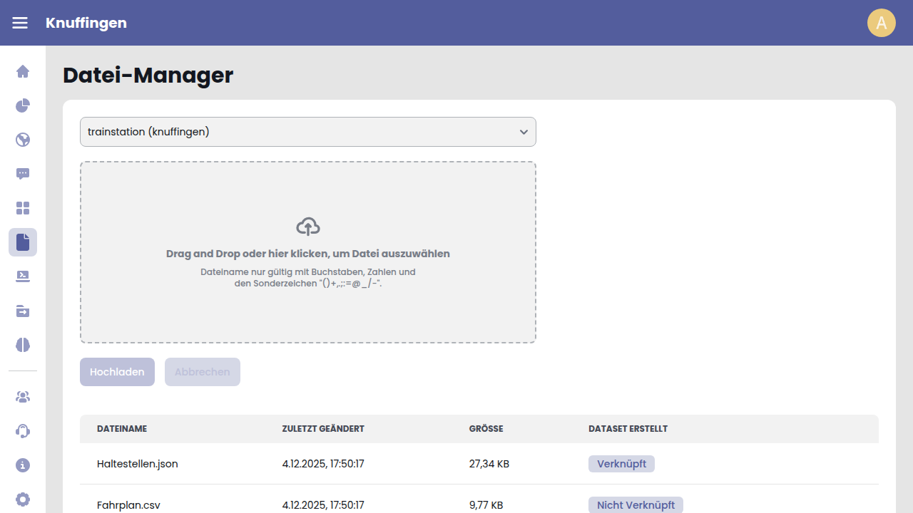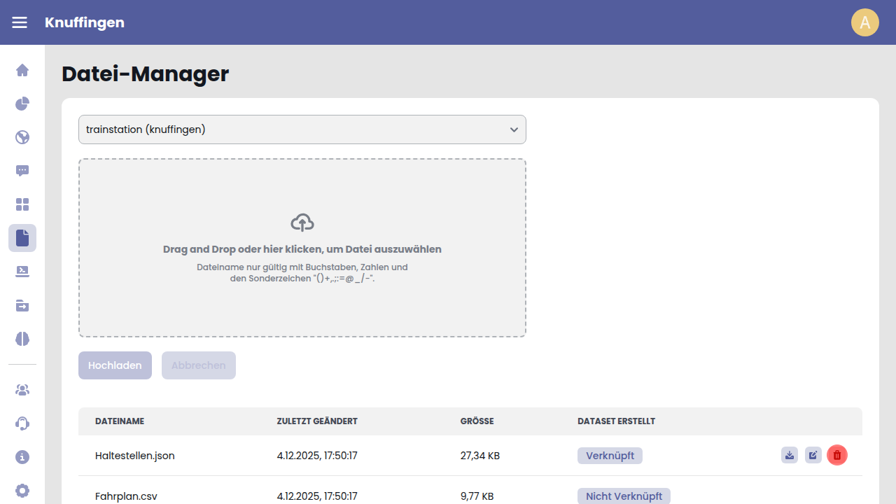 Eine Datei kann durch einen Klick auf das Mülleimer-Icon der entsprechenden Tabellenzeile gelöscht werden.