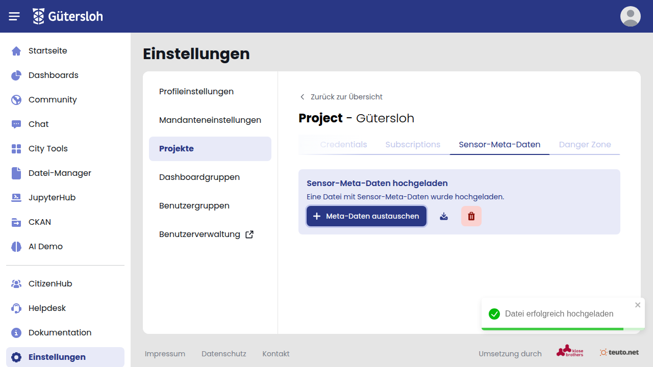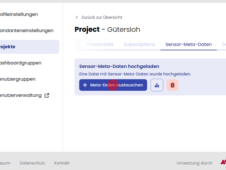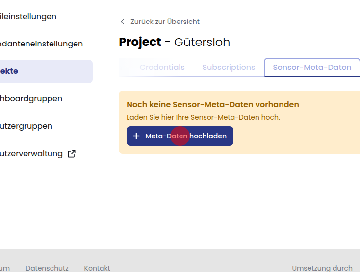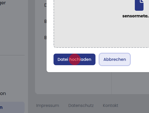 Auf dieser Seite können Sensor-Meta-Daten als CSV-Dateien hochgeladen und verwaltet werden.